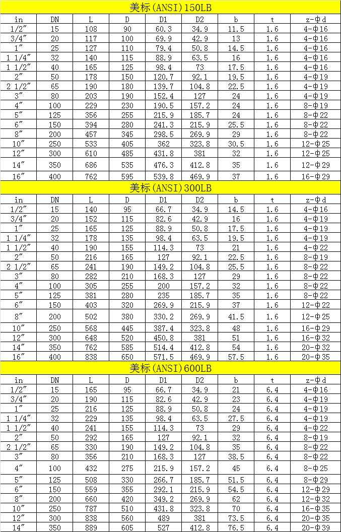公稱壓力:150,300,600LB